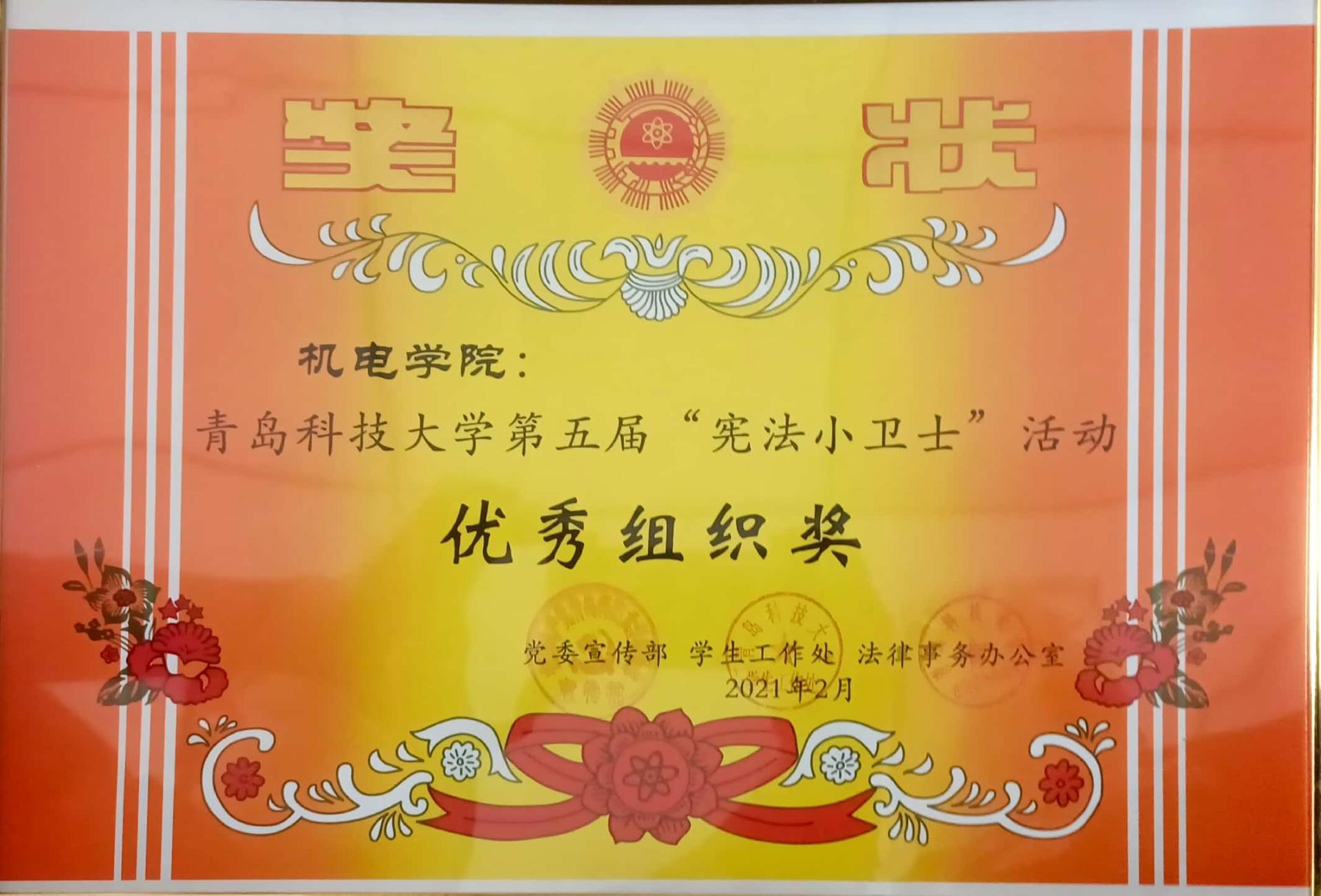 为贯彻党的十九大和十九届二中、三中、四中、五中全会精神,落实全面依法治国方略,引导学生了解宪法知识,理解宪法内涵,澳门十大信誉网赌大全积极组织学院学生参与“宪法小卫士”活动,荣获学校第五届“宪法小卫士”优秀组织奖。