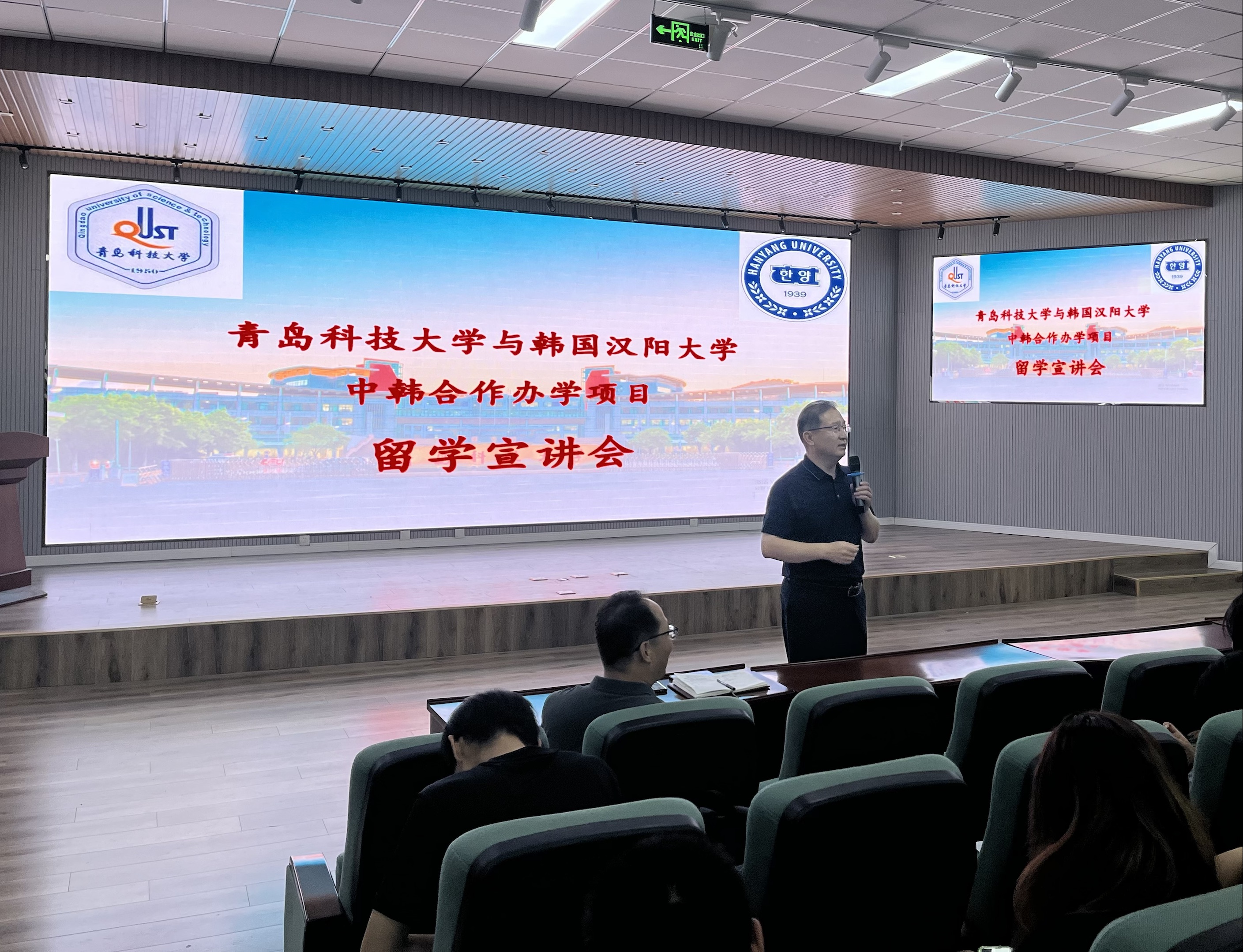 6月27日下午,澳门信誉最好十大平台与韩国汉阳大学中韩合作办学项目留学宣讲会在崂山校区机电楼530会议室召开。学院党委书记任允晓、副院长李剑光、项目负责人林奕出席了会议。
