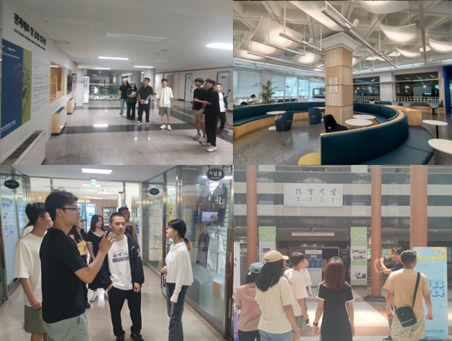 在国际教育学院徐东浩主管和相关老师带领下,沉浸式体验学校图书馆自习室、自由讨论室、休闲娱乐室等,参观了解福祉馆、宿舍公寓、棒球场、高尔夫球场等,实地观摩工学院机械工程、材料化学、人工智能等专业的实验室和办公室。相关老师向与会师生详细说明各场馆的功能、使用方法及相关特色活动,在韩校友逐一介绍实验室科研方向、学术成果和主要的设备仪器。