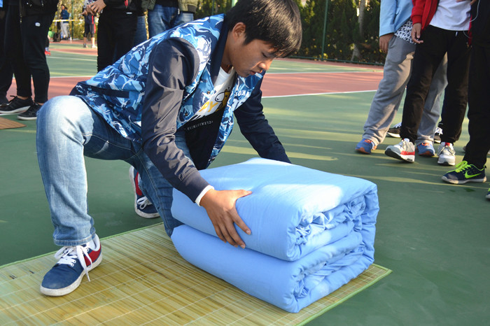 为了提高新生内务整理水平,培养学生良好的生活习惯,澳门十大信誉网赌大全于10月24日下午15:00在南苑运动场举行了一场精彩激烈的叠军被大赛。澳门十大信誉网赌大全分团委老师曲智强,分团委老师赵宗祥,学生会副主席…